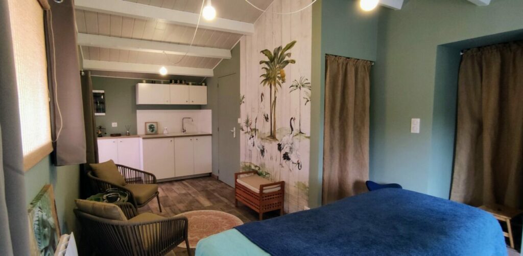 Je vous reçois à Saint-Froult, près de Rochefort en Charente-Maritime, dans une ambiance aux tons chaleureux et naturels, au calme avec la vue sur le jardin et la campagne environnante.